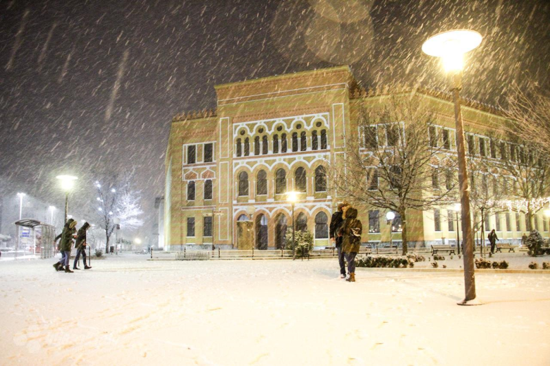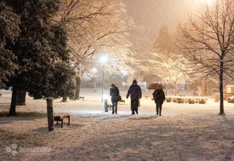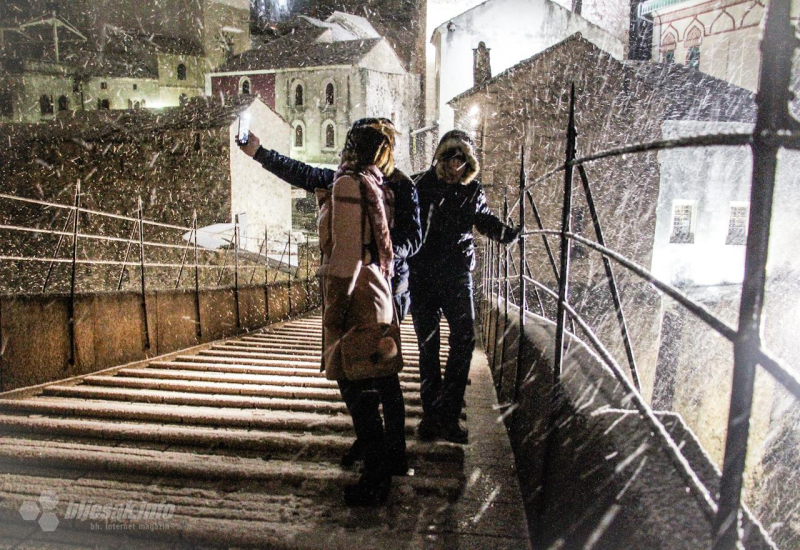 Zimskoj idili se ponajviše raduju djeca, dok odrasli najviše misle na tegobno čišćenje snijega. Očigledno je da je pred Mostarcima hladna noć, ali snijeg stvara idilu, stoga neka užitak traje