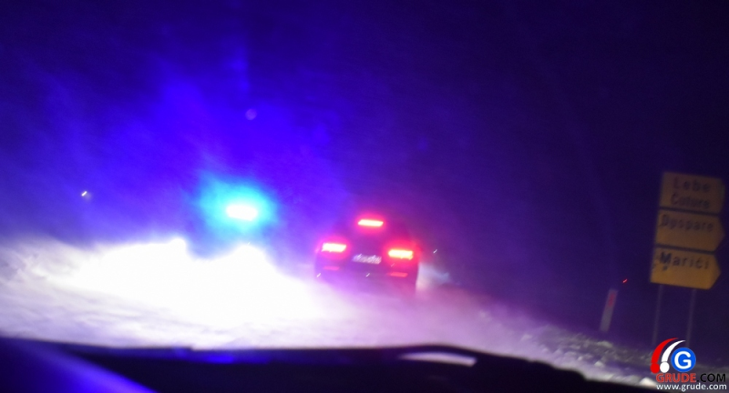 Na jednom dijelu ceste čitatelj portala Grude.com zatekao je policijsku patrolu. Kako se vidi na mjestu događaja vozač je izletio sa snijegom zametene ceste.