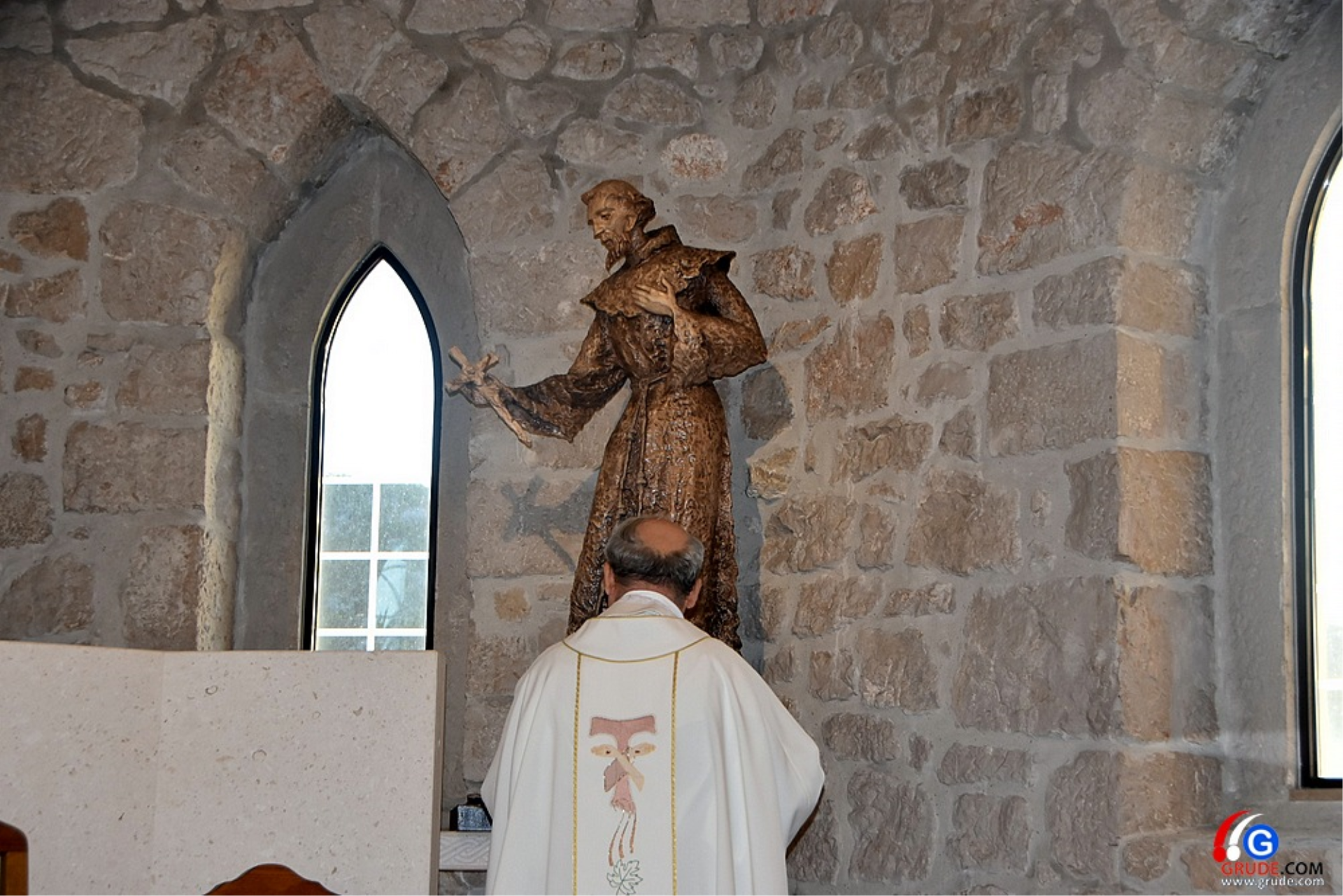 Iliju smo zamolili i da nam kaže kako je radio ovaj prelijepi kip. - Kip je izrađen u drvetu, javoru, i premazan patinom franjevačkog habita. Visina kipa je 180 centimetara. Franjo je u skrušenom stavu okrenut prema tabernakulu te na taj način i nas usmjerava prema svetom. U ruci drži križ kao izvor i inspiraciju svoje svetosti, kao što čitamo u poslanici na blagdan svetog Franje: Ne daj Bože da bih se ja ičim ponosio osim križem Gospodina mog - istaknuo je Ilija Skočibušić za Grude.com.
